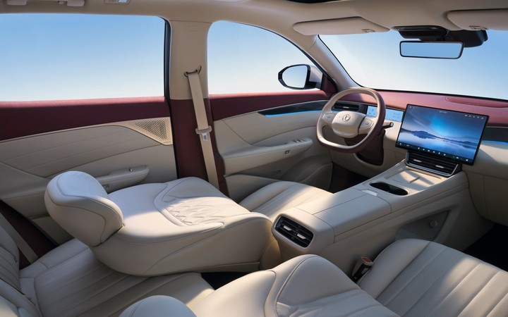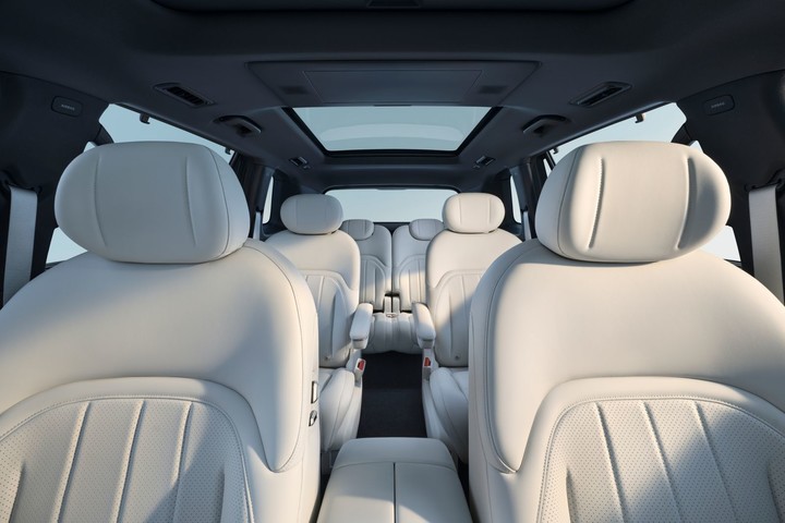 新车增加了一二排主驾、副驾单人床、主副驾双人床模式,第二排座椅向后行程拓展增加了 35mm。前排座椅支持 8 点式按摩,二排右侧零重力座椅支持 10 点式按摩,按摩力度和面积都有所提升,一二排座椅的加热和通风功能也升级到了更高效的版本。第三排座椅处则增加了儿童座椅接口(ISO FIX)并优化了靠背形面,让老人小孩能有更舒适的乘坐体验。
