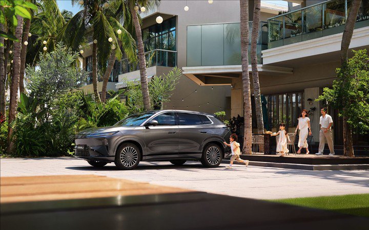 风神 L8 是一款面向家庭使用场景打造的中型新能源 SUV,在外观设计上兼顾了家里不同成员的审美需求。车辆整体造型简洁大方,前脸采用封闭式设计,配有贯穿式灯带和像素样式的大灯,尾部线条清晰,加入了贯穿式尾灯和小尺寸扰流板,显得有一定层次感。车身流线顺滑,腰线从前翼子板延伸至尾部,配合银色装饰条和双色轮辋,整体看上去比较协调。