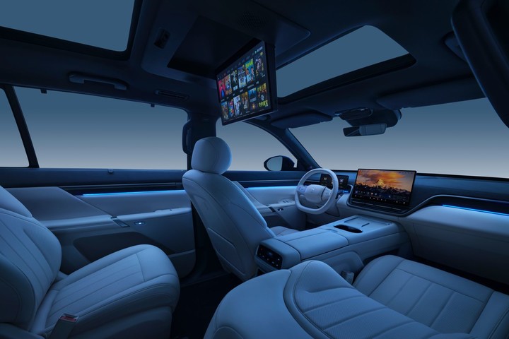 此外新车还升级了超大智能天幕遮阳帘、车窗遮阳帘以及后排 HE 后风挡隐私玻璃,后排屏幕提升到了 2K 分辨率,无线充电功率提升到了 50W,全车配备了 18 扬声器的音响系统以及 64 种颜色、10 级亮度调节的氛围灯,智能冷暖箱增加了二三排置物空间,可以实现语音控制、远程控制及下电保温功能。